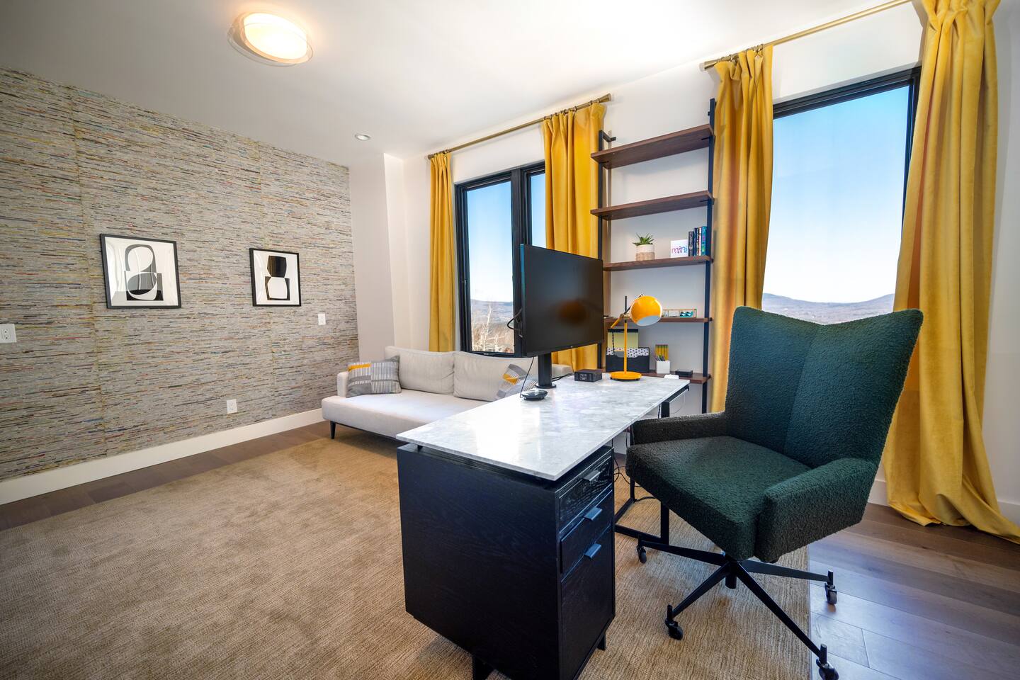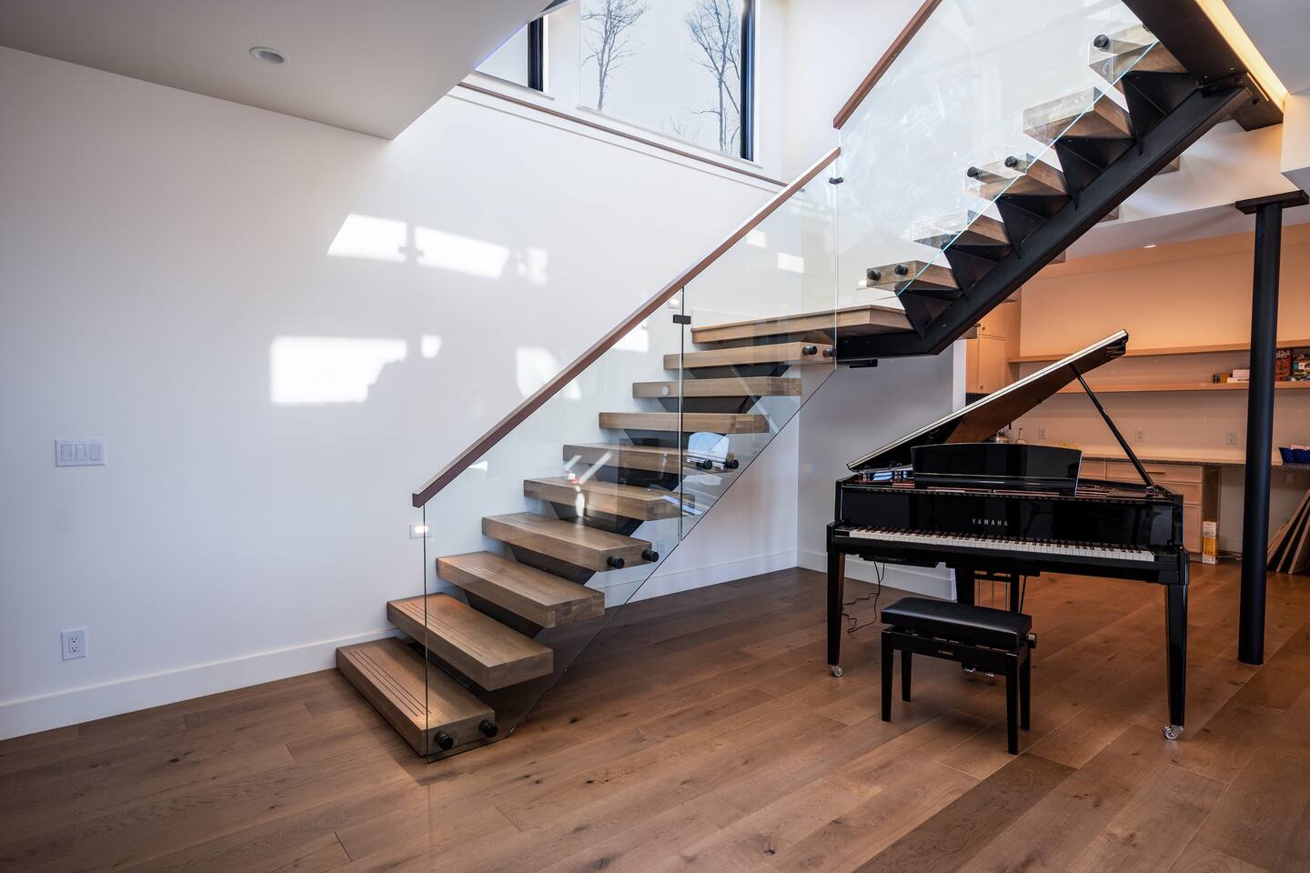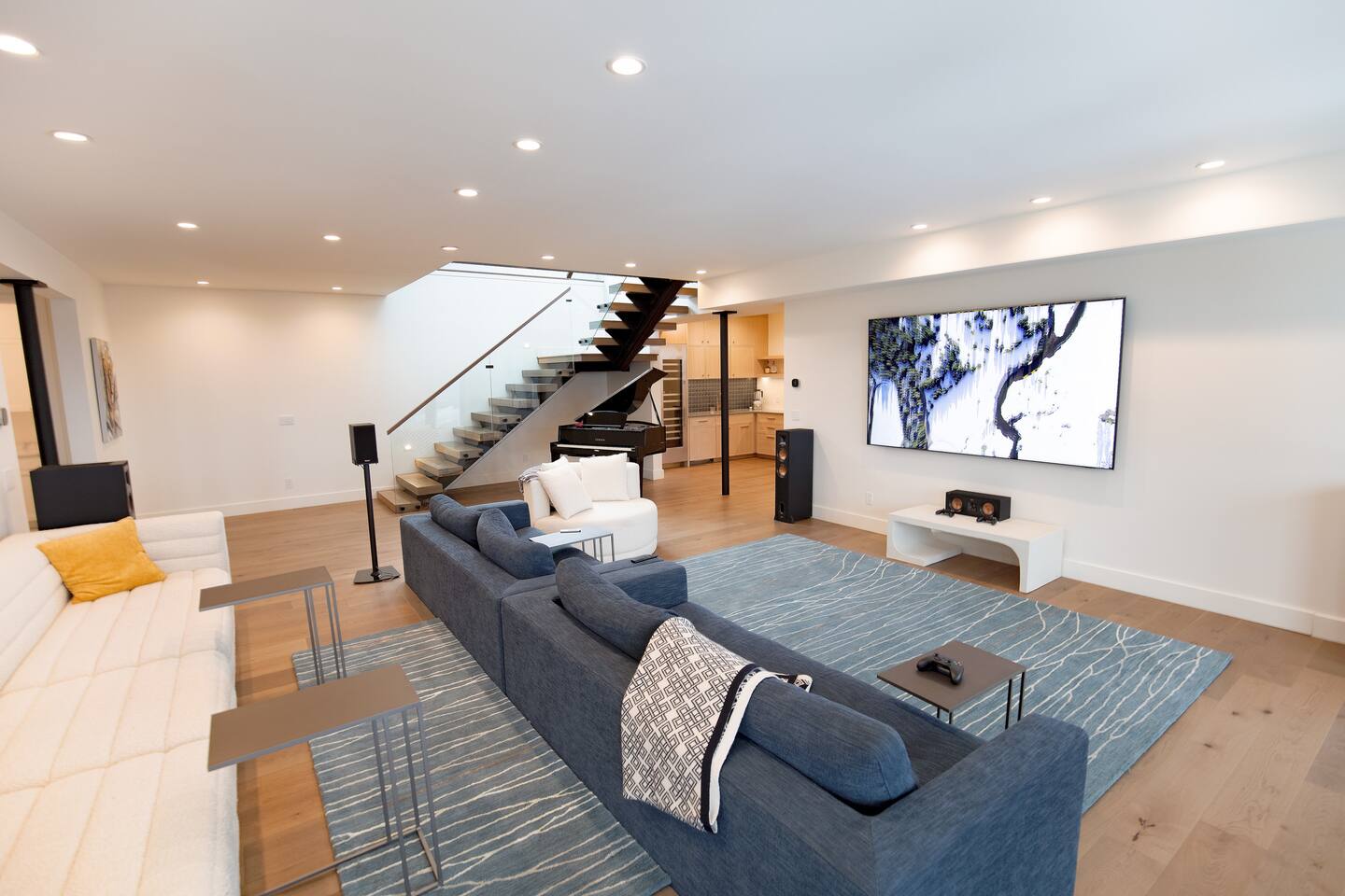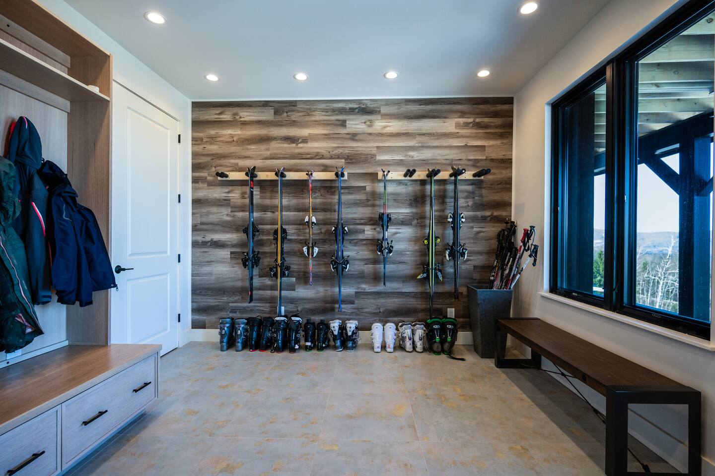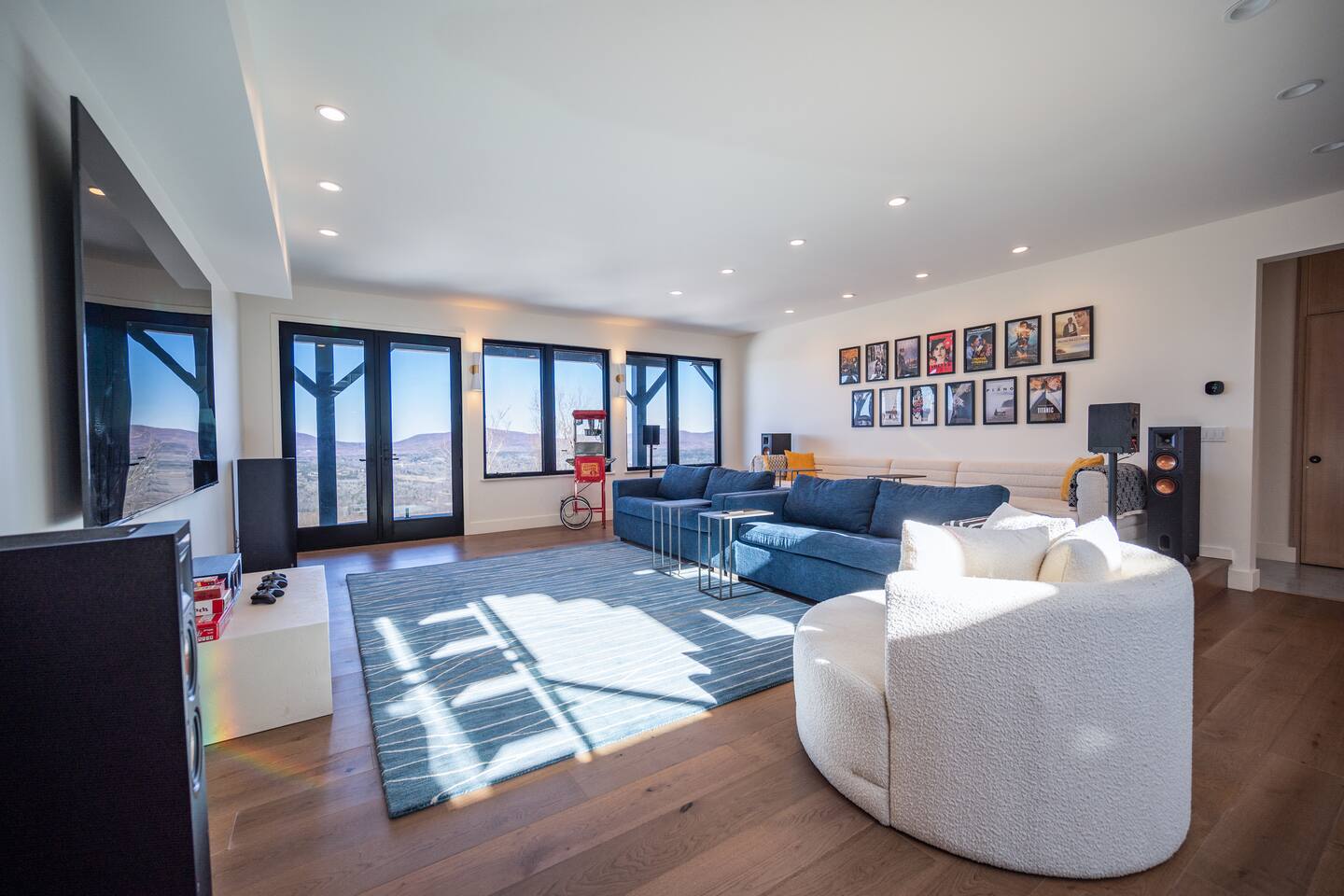 Featuring private swimming pool room, massage, steam shower, Dolby Atmos movie room with 100-inch 4K ultra high def TV, video gaming, gourmet kitchen, en-suite rooms, view wrap-around decks, full smart-home features and direct ski in/out trail access at the top of Windham Mountain Resort. “The View” is a unique space for a retreat in style. Finished in 2022, this luxury modern mountain smart home brings the wonderful outside into every room, with walls of glass bathing the space of natural lights and nano-windows for a seamless merge with the landscape in the warmer seasons. Two huge wrap around decks directly connect to three trails for skiing, hiking, and mountain biking., A pool room with a 20-ft swim spa of continuous streams will wow from beginners to professional swimmers. Also featuring hydro massage jets and a massage chair to relax and decompress. A movie theater with a 100-inch, 4K UHD state-of-the art Dolby Atmos system of 11 channels with every streaming services to find flicks and TV shows for all ages and moods. A Yamaha grand piano for private recitals with silent feature for practice, and a kitchenette with wine cooler for entertaining plus gourmet kitchen in the main level for the culinary enthusiasts. The bedrooms have been styled and furnished with high quality modern furniture, organic linen and environmentally friendly materials to accentuate the natural and eye pleasing decor. The smart features take the stress off with the automation of lights, door locks, with Apple Siri services that realize a next-gen experience in living and comfort.