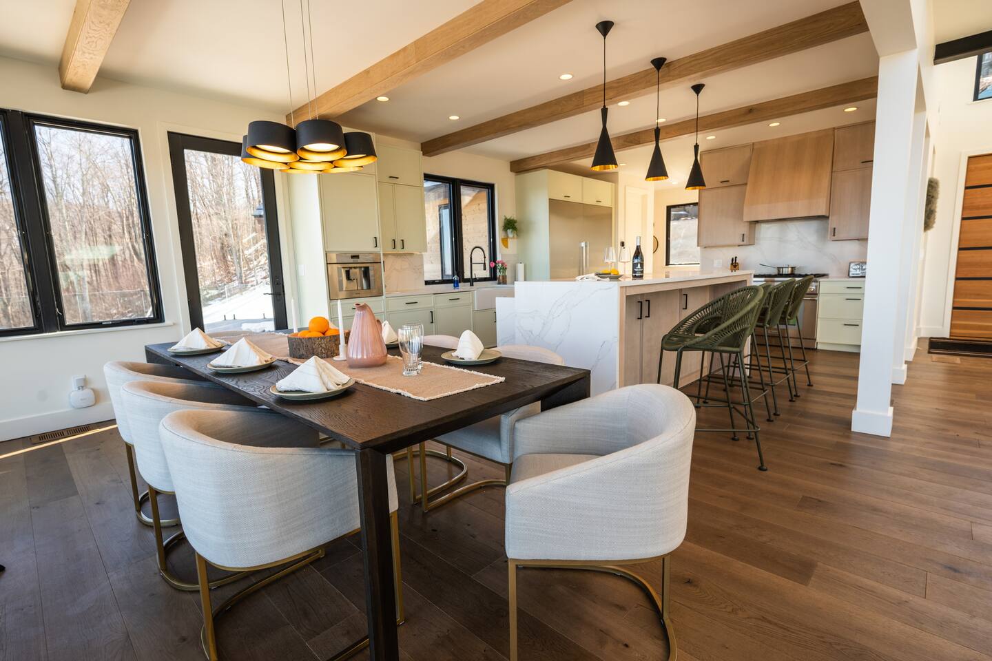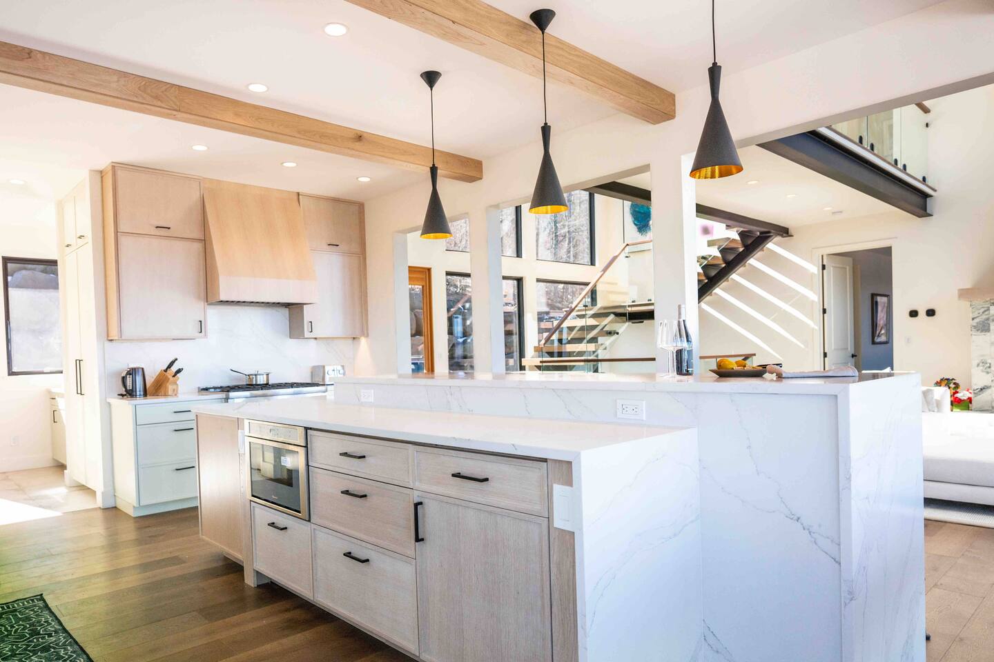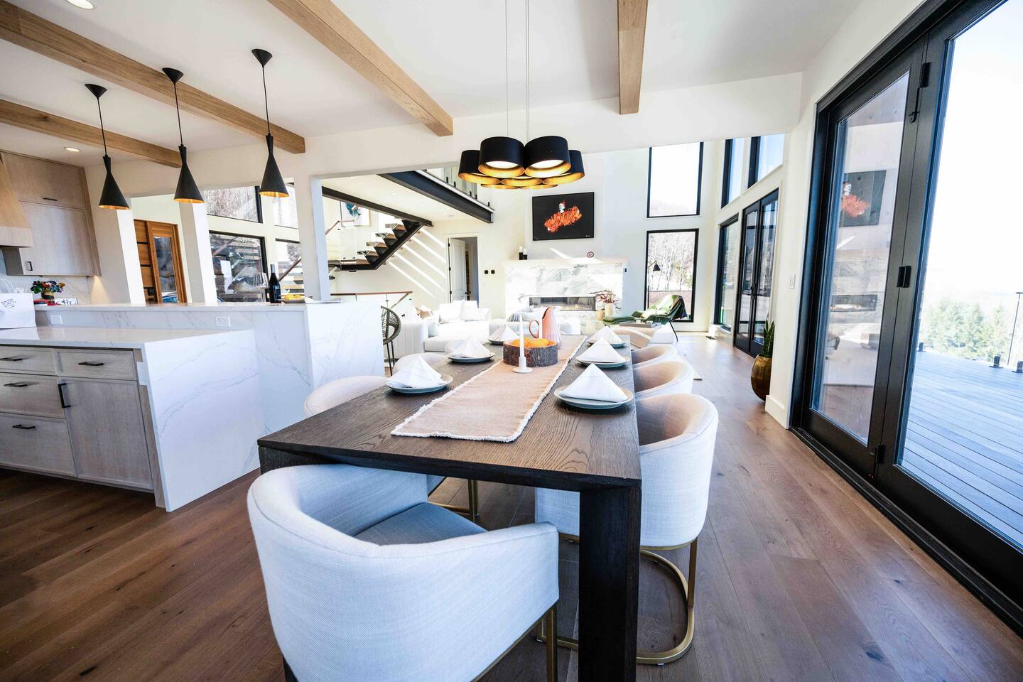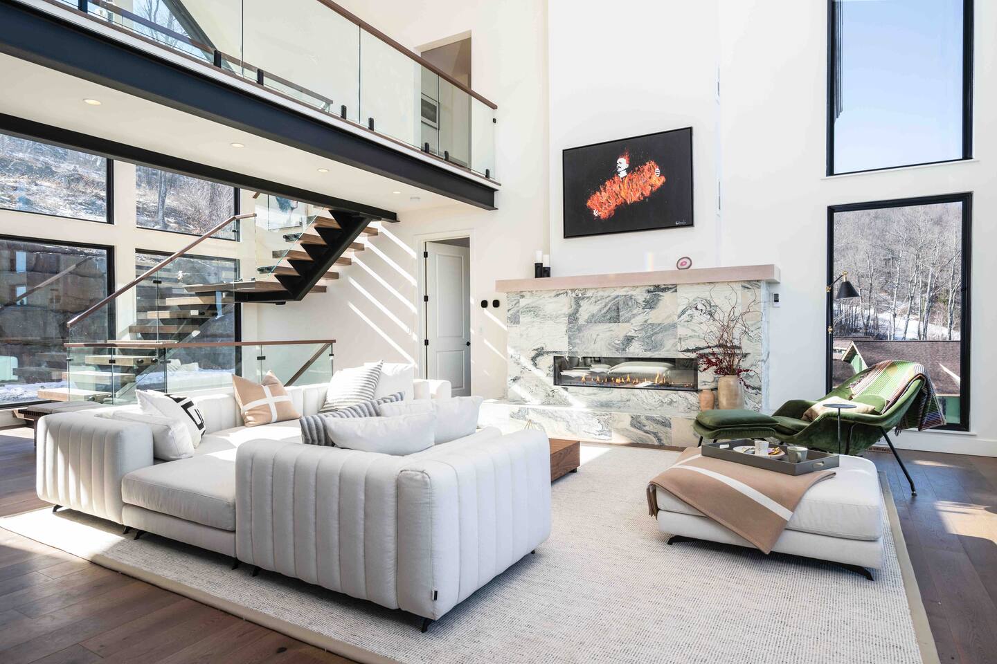 The house consists of three levels with incredible views from every window. Designed with exquisite attention to detail, this is our family dream mountain home. We love modern, beautiful simplicity, functionality, and environmentally friendly luxury.